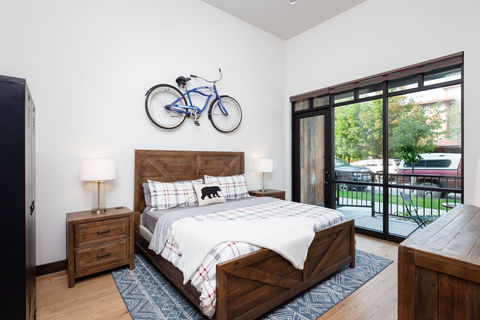 With the second bedroom being a loft, you walk in and immediately notice the size of the condo, very large with 20 foot ceilings. Although the unit only sleeps 4, there is room for larger dinners if you have friends or family staying in nearby short term rentals or local hotels. Our décor is unique with anything from a sled to a PBR Bike securely hanging on the wall.